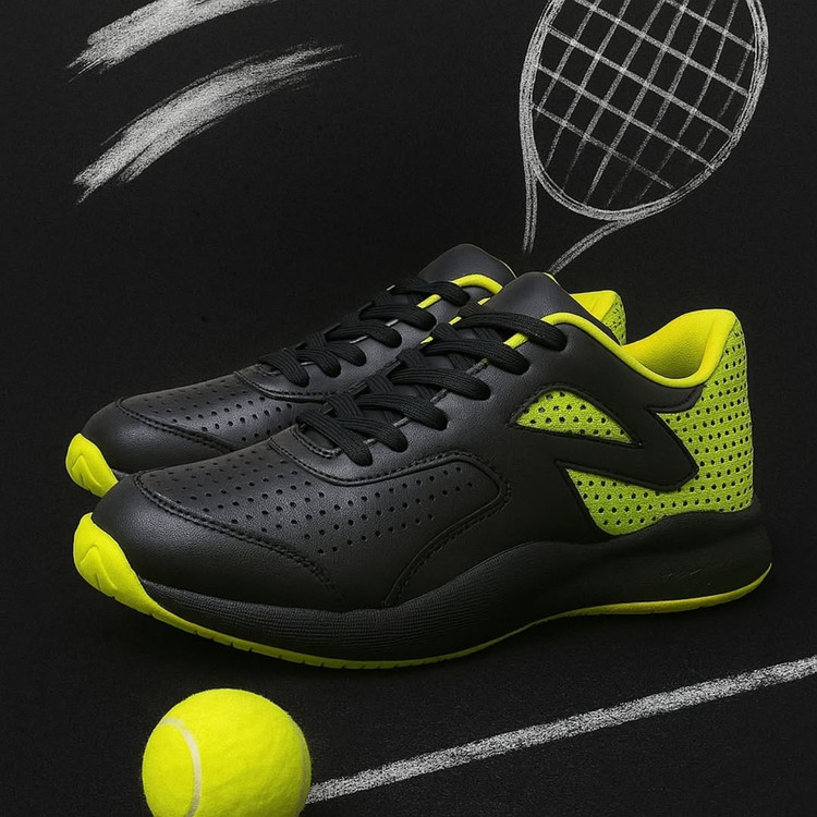 وقتی پای عملکرد وسطه، انتخاب درسته! کفش تنیسی مشکی فسفری، راحتی و طراحی خاص ،مقاوم و ساخته شده برای بازیهای پرسرعت.